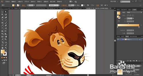 狮子的面部用暗橙色填充左侧本家儿体,右侧结尾用土黄色的渐变填充。狮子的眉毛用土黄色的渐变与暗橙色搭配填充超卓彩过渡结果。