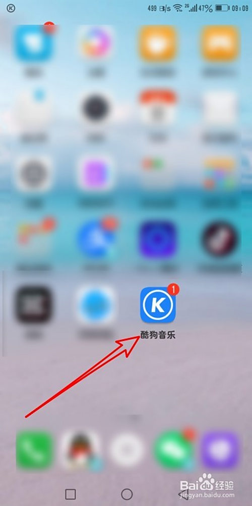 解锁手机屏幕,点击酷狗音乐的图标。