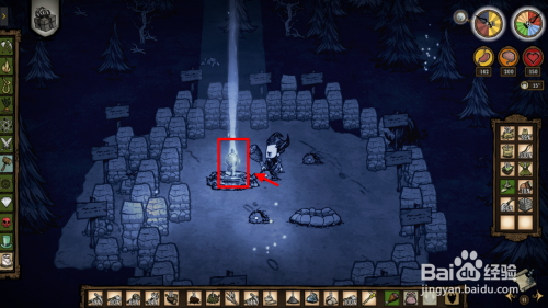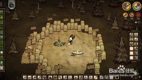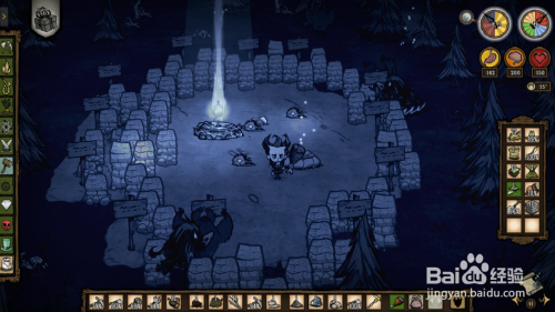 3、前期只用石墙就可以了,后期可以用石墙+木牌围住月石祭坛。