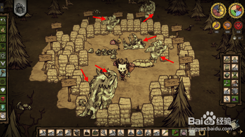 猪人和狗都像疯了一样想要接近月台,若是您安插适当,那么怪物就会被卡住在地图某个位置,只要对峙到天亮就ok了。