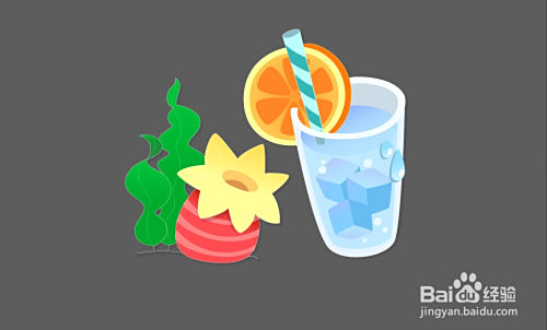 吸管上面的暗光用青色与青灰色别离填充正面的条纹与顶端的吸口路径。下方的玻璃杯的顶端用灰白色填充。