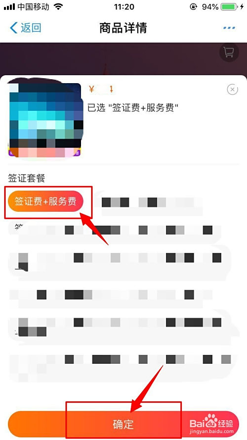 进入下个页面,此时需要选择打点的项目,现实上,若是不焦急的话,选择“签证费+办事费”就可以了,选择完毕后,点击“确定”,就可以在家期待签证邮寄抵家了