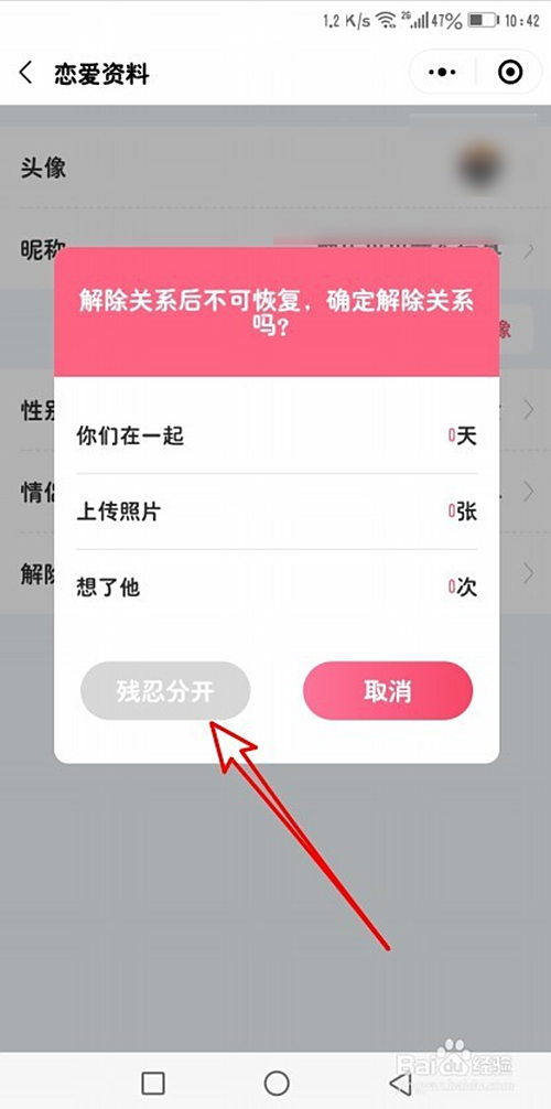 接下来在打开的小我中间页面中,点击解除关系的菜单项。