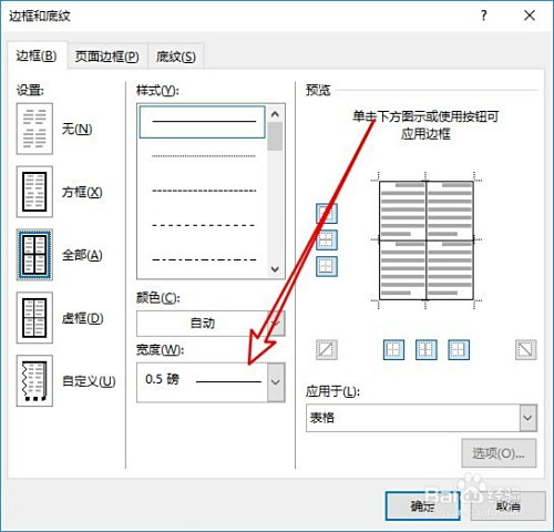 接下来在打开的窗口,我们设置边框的样式与宽度就可以了。