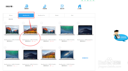 在正二品官网首页找到MacBook Air选项,找到您要估价的MacBook Air17年13寸电脑,或者直接在搜刮栏搜刮MacBook Air17年13寸进入到MacBook Air详情页面。