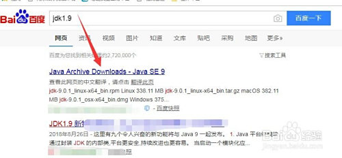 第一步,打开百度,然后输入【jdk1.9】搜刮后找到如图所示的官网进行下载jdk