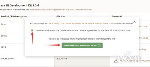 第三步,点击下载的时辰需要勾选上面简直认复选框,然后点击下载,这里必需要登录oracle的账号,没有可以注册