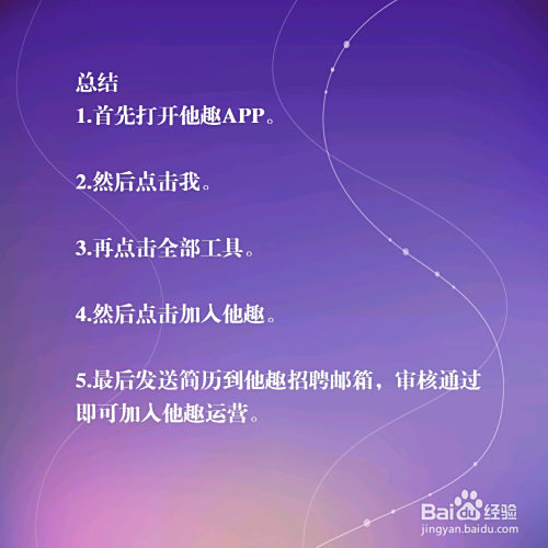最后发送简历到他趣雇用邮箱,审核经由过程即可插手他趣运营。