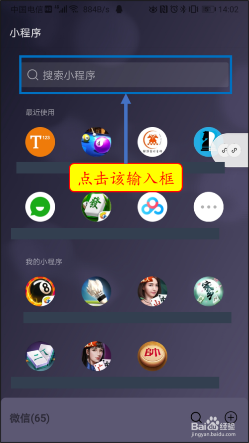 点击一下“搜刮小程序”输入框地点的位置。
