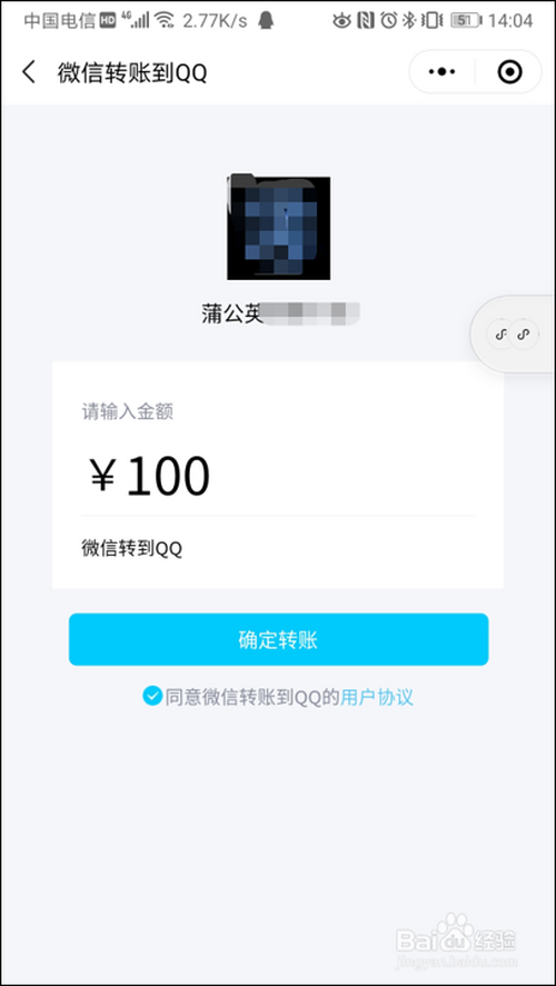 输入转账金额和备注,点击“确定转账”。