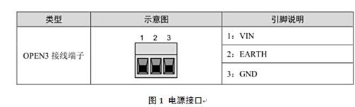 接口形式为OPEN3接线端子,电源额定输入电压为 6.8~48VDC,毗连器旌旗灯号界说如图1所示。