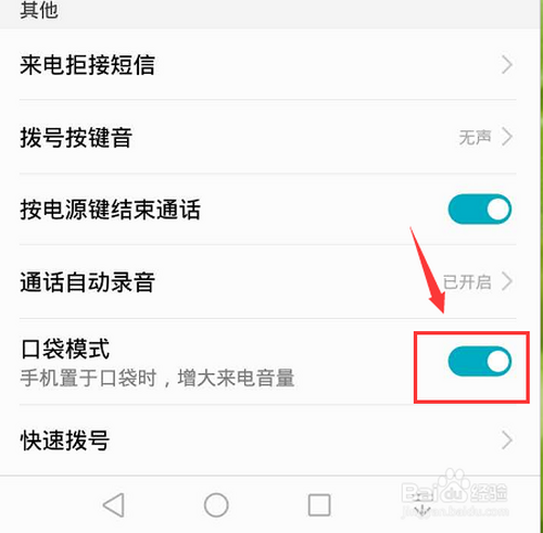 4.把口袋模式开启即可,这样手机放在口袋就会增大来电音量