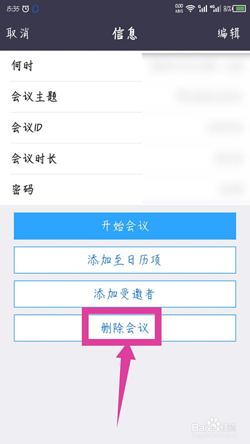3,选择信息界面的删除会议
