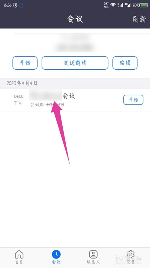 进入到会议界面,能看到上面放置的会议,点击进入到会议里面,不要点击起头。如图所示