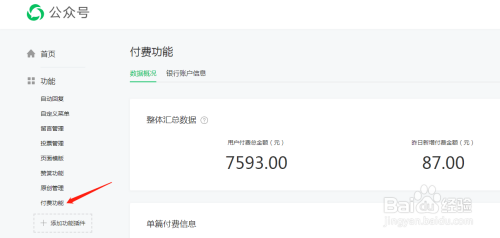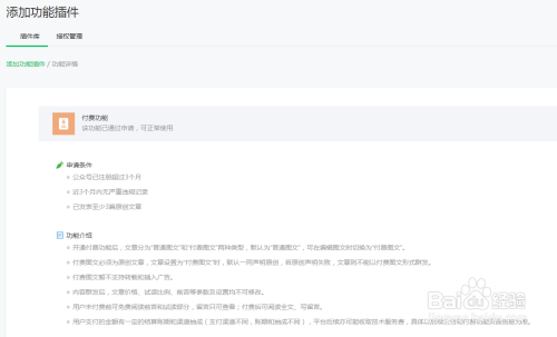 在功能插件里点击付费阅读进入。可以看到,开通付费功能需要至少原创三篇文章,也就是您必需对峙原创内容,开通的可能性高。