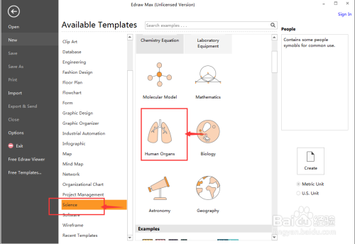 1、打开Edraw Max,在科学画中双击人体器官;