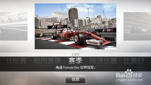 起首我们先来看看F1 2016的本家儿界面。此中最令车迷们冲动的即是新增了自界说赛季,以便于通俗车迷及玩家也能过一把体验F1车手的瘾。