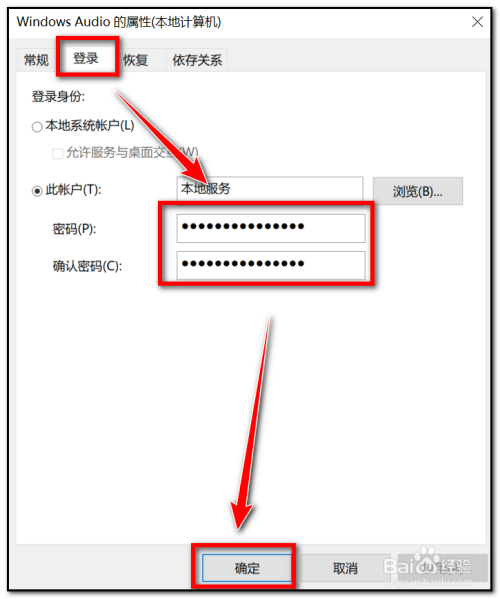 6.切换到“登录”栏,点窜此账户的暗码后点击“确定”即可
