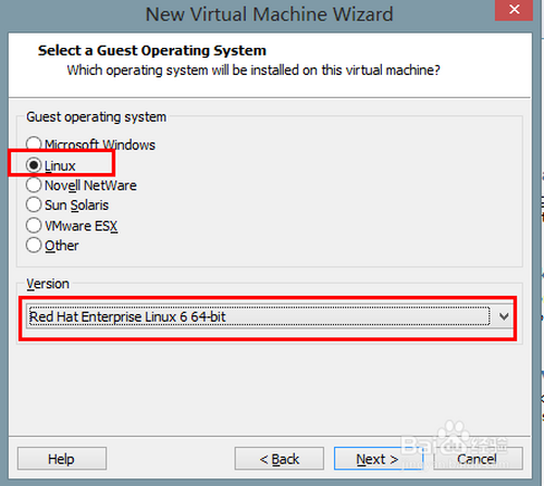5. 起首选择“Linux”,再选择对应的版本号,next