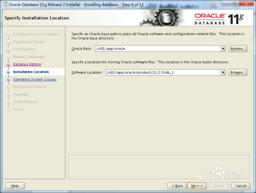 选择安装目次,注重确定$ORACLE_BASE 变量和$ORACLE_HOME 变量与情况变量连结一致。点击“next”