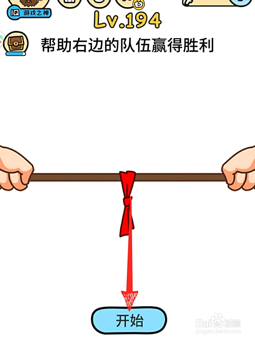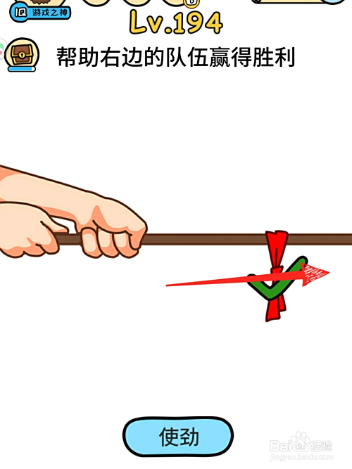 最后如下图所示,按住红绳标的目的右边拖动即可过关。