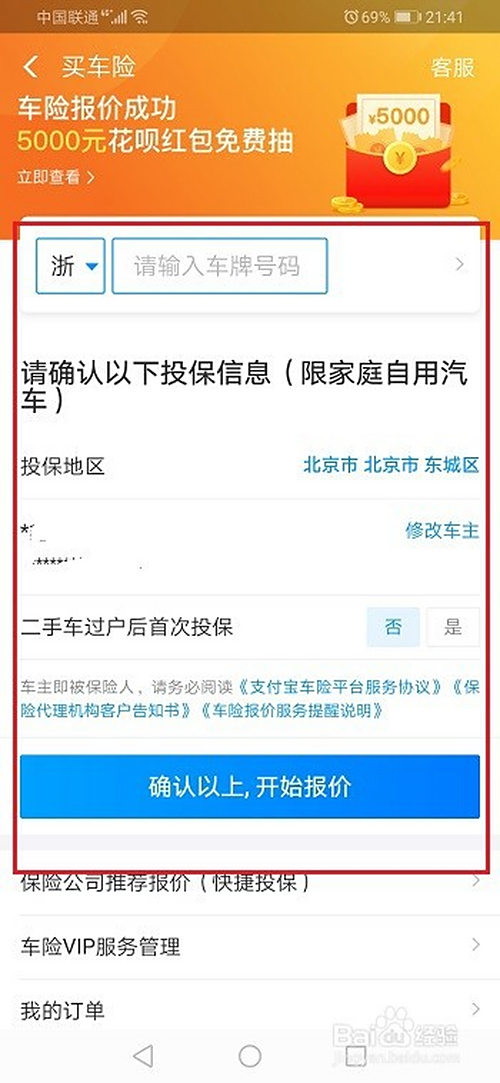 第四步进去采办车险界面之后,输入投保信息,如下图所示: