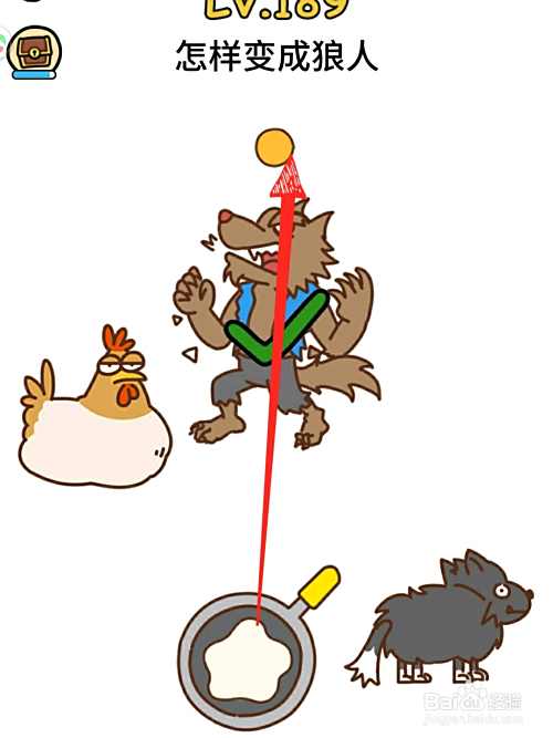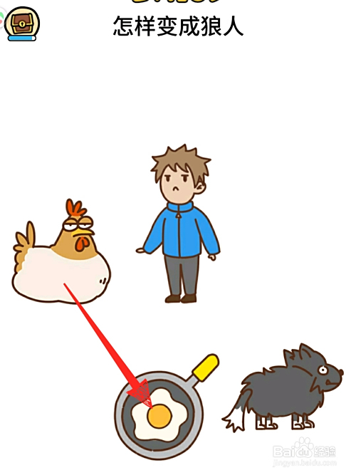 5.最后如下图所示,将蛋黄移动到狼人头上即可过关。