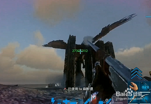 接着不断的朝狮鹫利用麻醉针,让狮鹫昏倒。