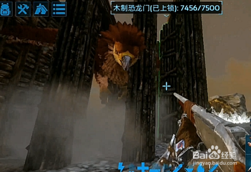 我们可以做一个木制恐龙门框,把狮鹫引进来。