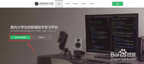 ②第二步,进入百度前端手艺学院官网后,点击首页左侧“我要报名”。
