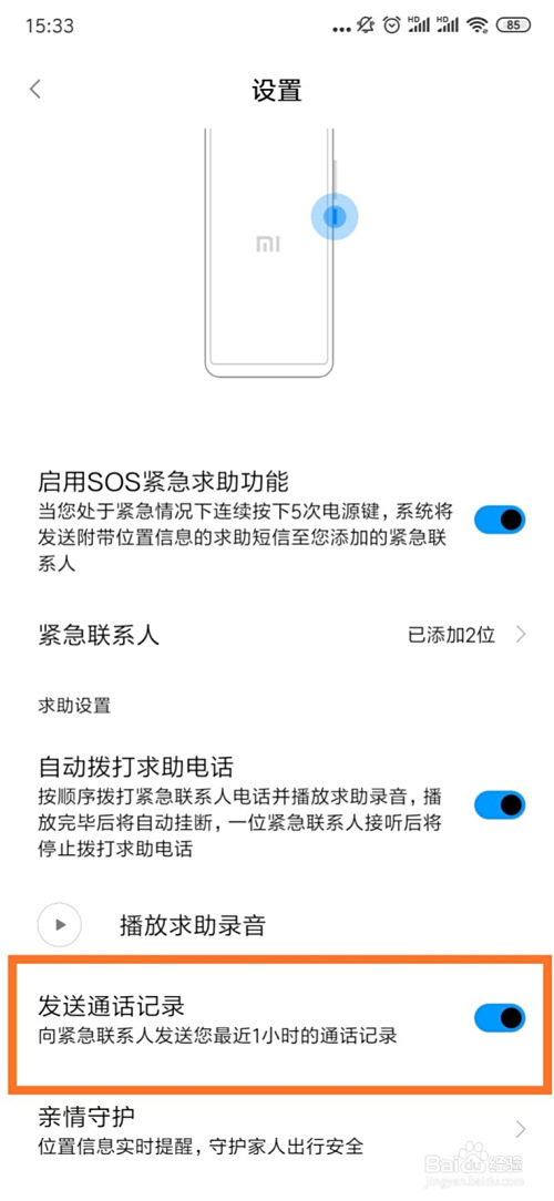打开“发送通话记实”开关。