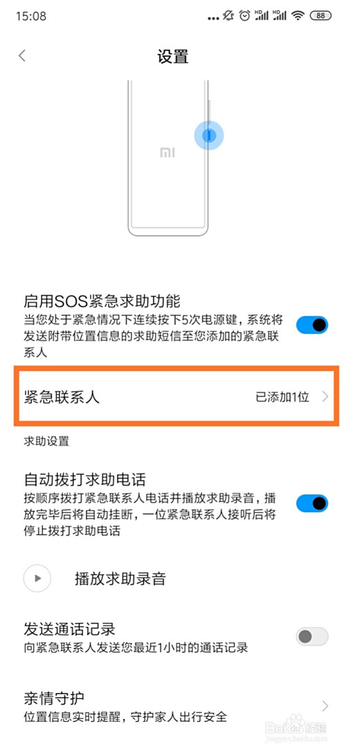 点击“告急联系人”。