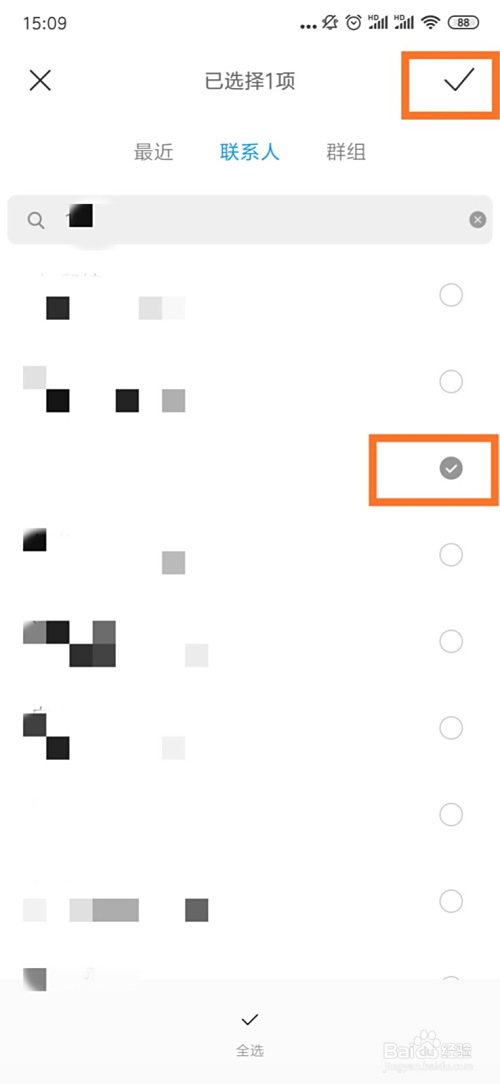 勾选联系人,点击“✔️”确定。