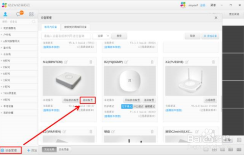 打开萤石匠作室,登录萤石账号。在“设备办理”下找到账号下的N1,进入高级设置装备摆设。
