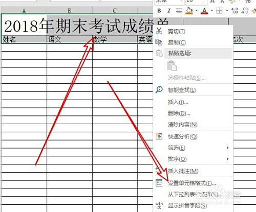 右键点击选中的数据区域,在弹出的菜单中选择设置单位格格局的菜单项。