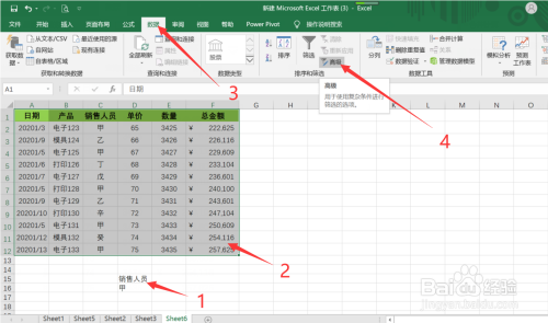 1、先输入多项前提,再框选筛选列表,在【数据】选项卡中点击【高级】