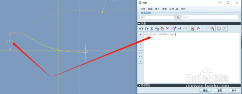第四步,是最最关头的一步,我们要将弧线的高度作为可变的点,在东西栏的关系项里,输入如下图的函数关系。