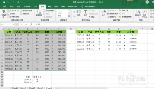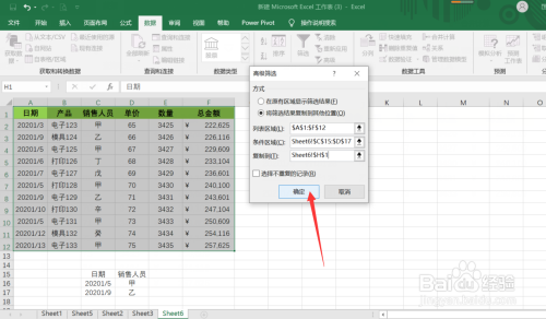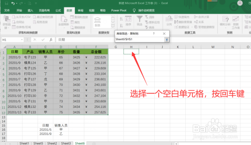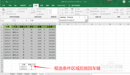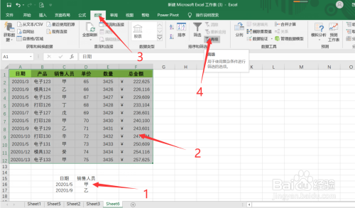 第一步:先在表格中输入需要筛选的多项前提,再框选筛选列表,在【数据】选项卡中点击【高级】