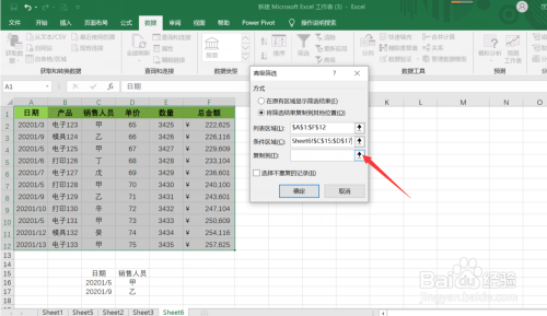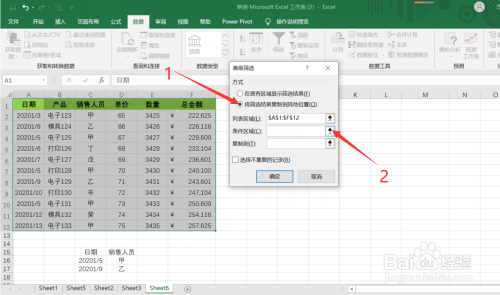第二步:选择【将筛选成果复制到其他位置】,在点击【前提区域】右侧的下拉箭头