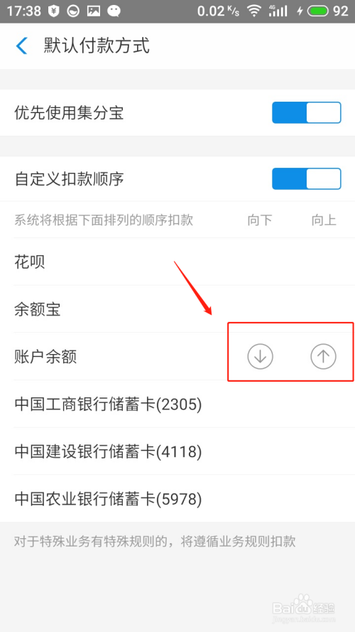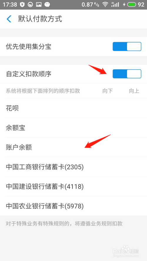 3. 开启【自界说扣条目挨次】,调整扣条目挨次。