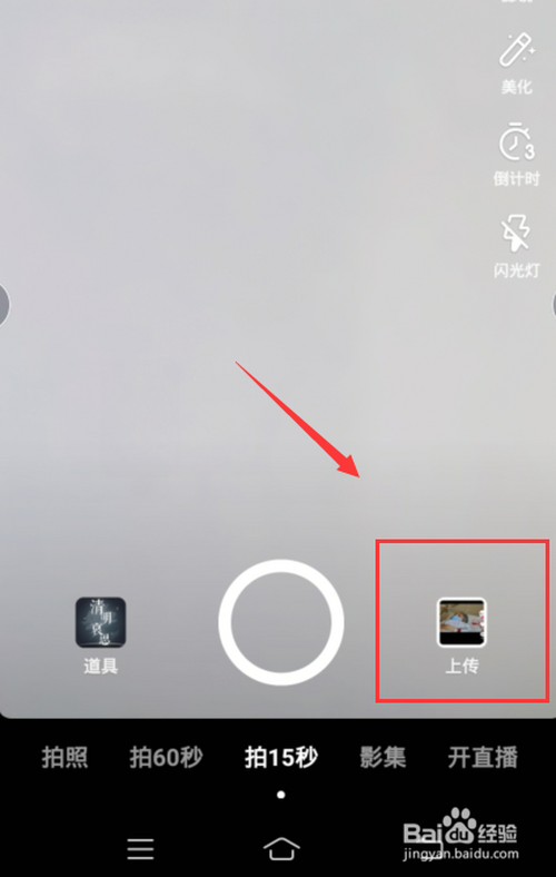 第二:进入视频拍摄窗口点击右下角的【上传】按钮。