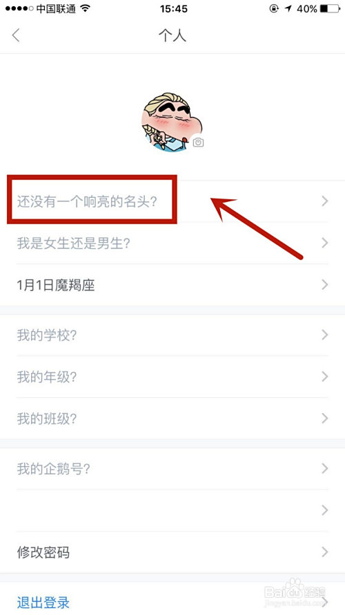 2.点击本身头像,再点击还没有一个清脆的名头。