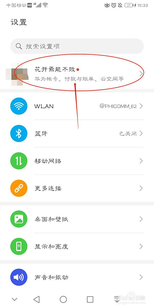 点击页面第一栏”华为账号“