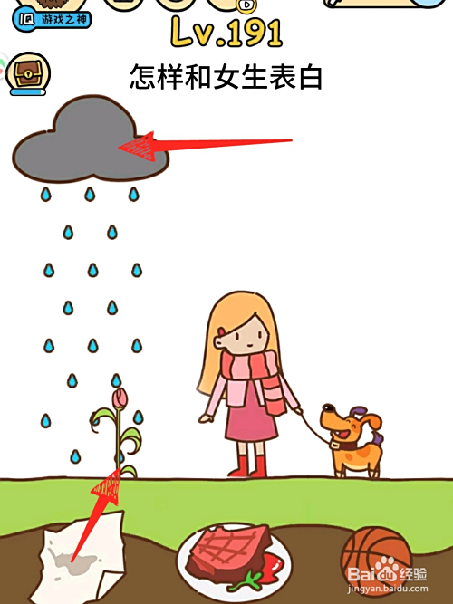 再把牛排给小狗吃,用小狗的粪便给幼苗施肥,然后将花采下送给女孩即可过关。