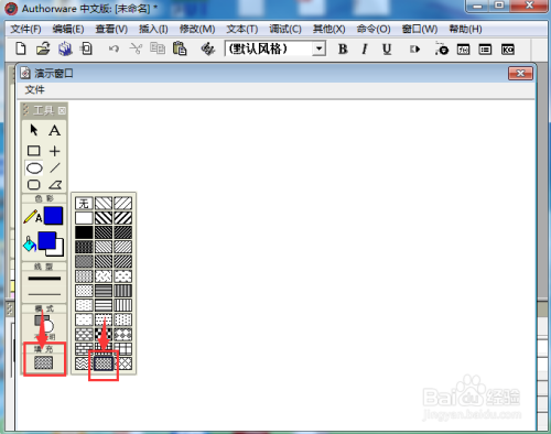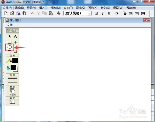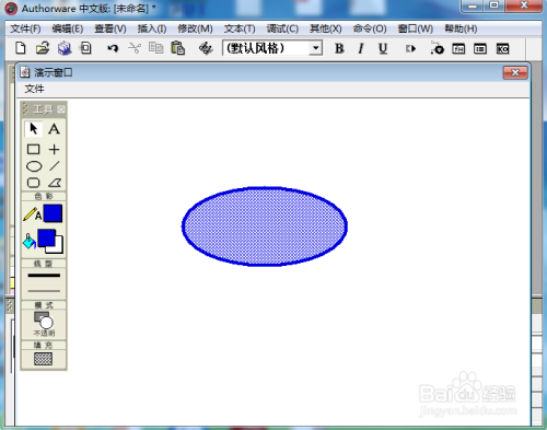 我们就在Authorware 中建立好了一个蓝色椭圆并填充上了蓝色暗影。
