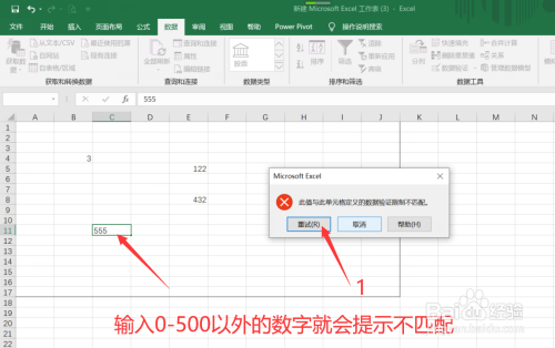 第五步:这样就只能输入设定的规模内的数字,点击【重试】