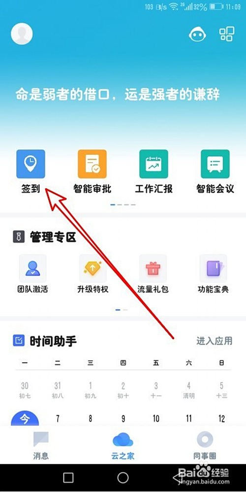 在打开的软件本家儿界面点击签到的图标。