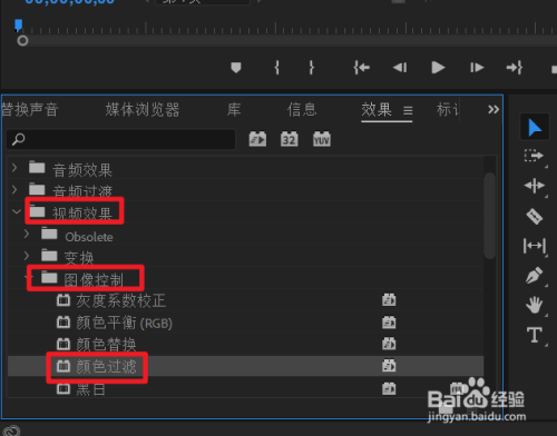 点击左侧【结果】,选择【视频结果--图像节制--颜色过滤】结果,并拖动到右侧与素材进行重合。