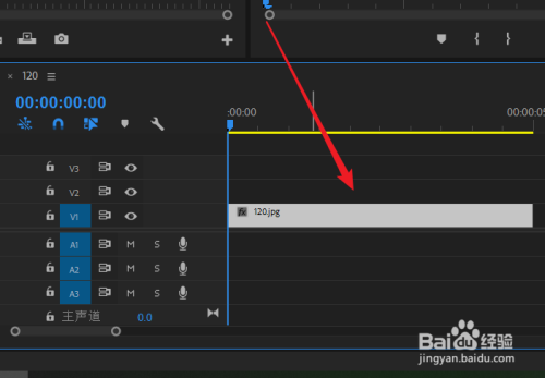 将素材从左侧拖动到右侧时候轴,并选中素材。