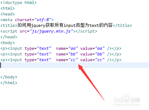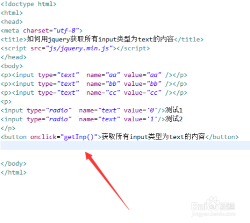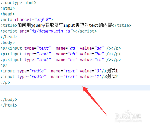 新建一个html文件,定名为test.html,用于讲解若何用jquery获取所有input类型为text的内容。